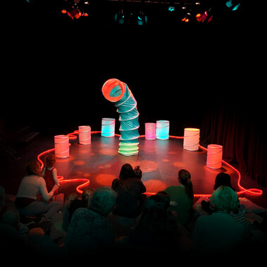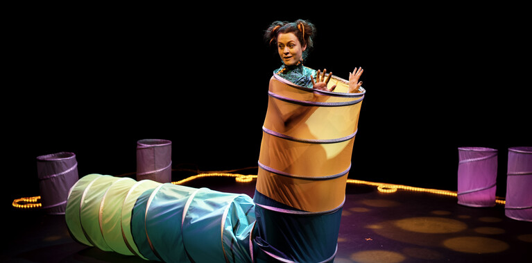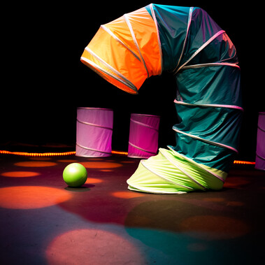 toooB is an enchanting wordless performance for 6-24 month olds and their grown ups. A gentle sensory adventure where a performer is costumed inside a giant caterpillar-like tunnel creation, magically manipulating it before playfully emerging from the tunnel and inviting the audience to play. toooB has an original soundtrack, captivating movement and is designed to be a perfect introduction to theatre and dance for the very young encouraging empathy and playful interaction. There is a stay and play session with the performer after the show.
